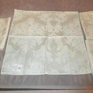 2002 Vtg Set Of 4 Beauvoir French Embroidered Napkins Cotton Blend Ivory Floral