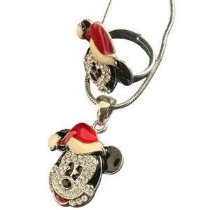 2003 Disney Avon Santa Mickey Mouse Christmas Ring & Necklace Size Small/Medium