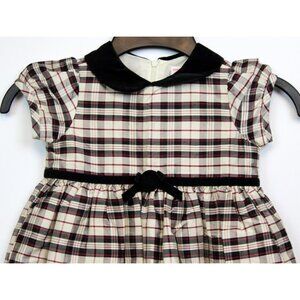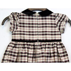 2003 Gymboree Holiday Magic Plaid Silk Dress sz 3 5 Rose Bow Lined Formal White