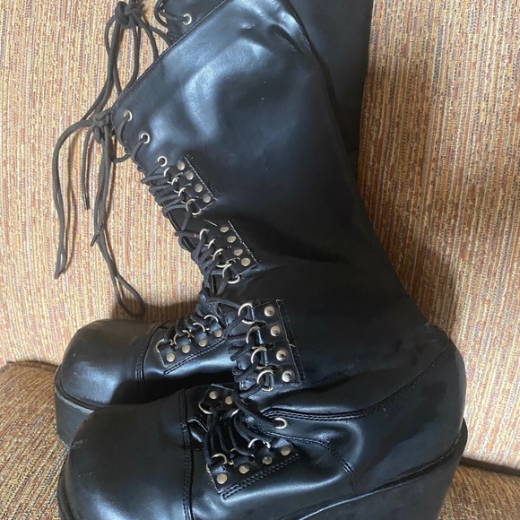 I loved these boots and wore them so much! The are size 8 and I thought they were pretty comfortable. They are a bit scuffed on the front toes on top of one boot but I believe they can be fixed. Original laces, cleaned up as best as I could get them. They lived in a closet the last decade or so. I took out a very thin lining on the soles of the inside of the boots because they were crumpled up inside and just useless now. Ready for someone else to hopefully love them as much as I did! Thanks for looking!