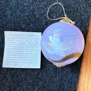 Featuring a delicate white peace dove, this hand-painted treasure embodies the spirit of "Peace on Earth." Its intricate details and timeless design make it a perfect addition to your Christmas tree or a thoughtful gift for loved ones.