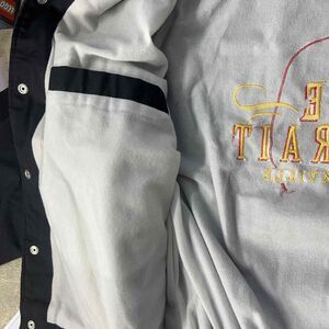 You are bidding on a 2003 Vintage George Strait Honkytonkville Black Country / Western Jacket size L PLEASE check measurements very carefully before bidding! -Stitched/embroidered patches -65% polyester 35% cotton -Snap-button closure -2 side pockets -Elasticated cuffs, collar & bottom hem -Made in USA -Excellent vintage/pre-owned condition with no signs of wear. Looks to be New w/out tags. There are no rips, holes, stains or other obvious defects -Tons of life left in this hard to find vintage country music jacket!