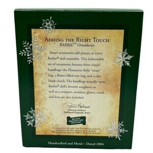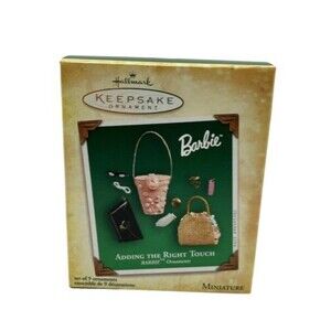 2004 Barbie Hallmark Keepsake Adding the Right Touch Set of 9 Ornaments RETIRED Purses Sunglasses Gloves Comb Compact Necklace Keys
