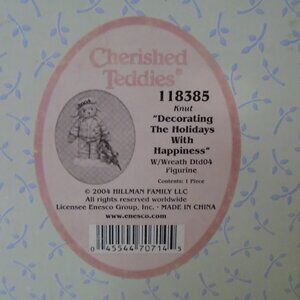 Cherished Teddies - #118385. Knut - "Decorating the holidays with happiness" - with Wreath -