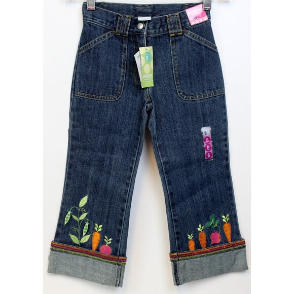 2004 Gymboree Grown with Love 6 Denim Jeans Carrot Embroider Peas Garden Radish