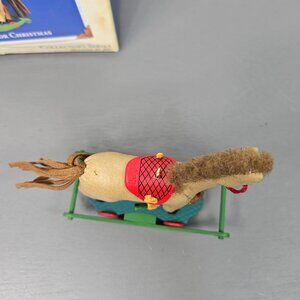 A delightful addition to any holiday collection, this Hallmark Keepsake Ornament from 2004 features a charming pony on a sled. Handcrafted and meticulously detailed, it comes with its original box and card, capturing the nostalgic spirit of Christmas.
