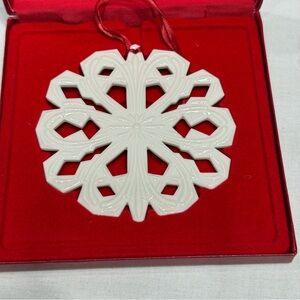 Intricate white snowflake ornament by Longaberger. Ideal for festive decoration.