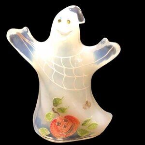 Rare Limited Edition Fenton Art Glass Family Signature Series 2004 Opal Mist Spider Web Pumpkin Halloween Ghost “Boo Boo” (5278 YK), signed by Scott Fenton, #291