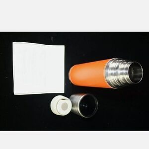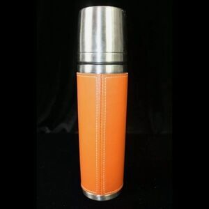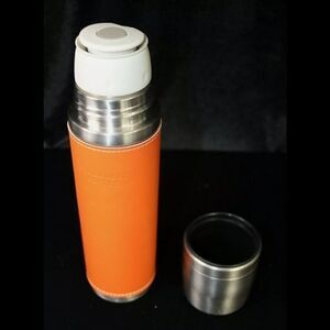 2004 Starbucks Stainless Steel 12oz Thermos Orange Sophisticate Leather Wrap.