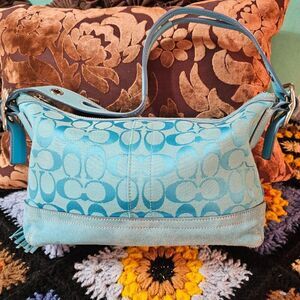 RARE color 2004 Vintage Coach Y2k East West Hamptons Shoulder Bag in Turquoise Jacquard