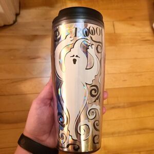 Vintage Starbucks Tumbler from 2004 Halloween season. 3 different ghosts personalities with shiny silver background. Perfect for spooky season coming!