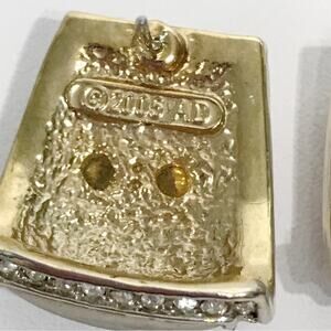 2005 AD Signed Mixed Metal Mate Silver Gold Tone Rhinestone Elephant Earrings
