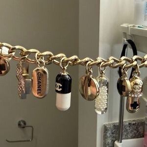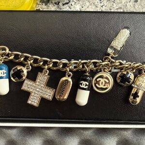2005 authentic and vintage Chanel charm bracelet with medical themed 14 charms. This bracelet is a limited edition.