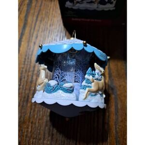Good Used Condition 2005 Carlton Cards Heirloom Ornament Collection Dashing Through the Snow Christmas Holiday Tree Ornament that Illuminates with Christmas Tree Bulb Light using Your Own Bulb with Nothing Additional to Plug in. Beautiful Reindeer Carousel Dated 2005