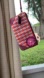 2005 Coach wristlet, houndstooth pattern, suede flower appliqué, EUC.