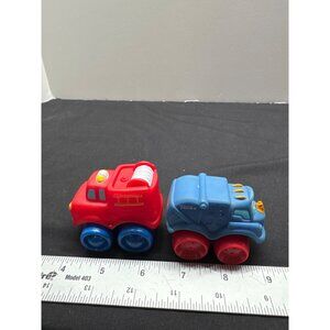 2005 Hasbro Tonka Chunky Plastic Toy Cars Set Of 2 - Red Fire Truck & Blue Tow T
