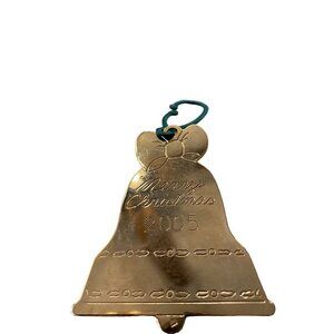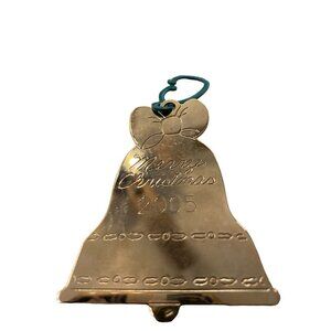 2005 Holiday Christmas Bell Ornament Duchin Made in USA 2.5"h Goldtone Flat