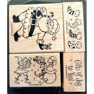 2005 Stampin Up! Gifts Of Joy Wood Mounted Rubber Stamp Set Holidays