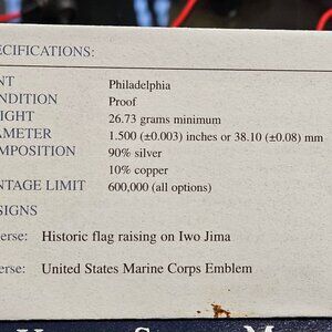 Minted at Philadelphia, this PROOF coin set is 26.75 grams (minimum) and is 90% silver & 10% copper. Only 600,000 produced.