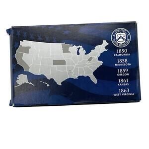 Celebrate the story of America’s 50 State Quarters with this 2005 U.S. Mint Proof Set featuring California, Minnesota, Oregon, Kansas, and West Virginia. Original box and certificate are included.