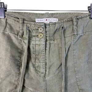2005 y2k Tommy Hilfiger linen blend wide leg cargo crop pants size 12 roll up