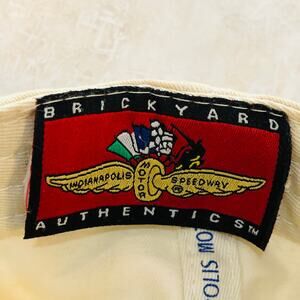 Embroidered strap back hat. Some discoloration on the bill, front and inside of the hat. Embroidery on front, bill, back, with hook and loop strap. Strap has logo patch on it. Authentic Brickyard Indianapolis Motor Speedway Hat. See photos for details.