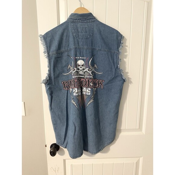 2006 Daytona Bike Week Sleeveless Denim Biker Shirt Pockets Men’s Size Medium
