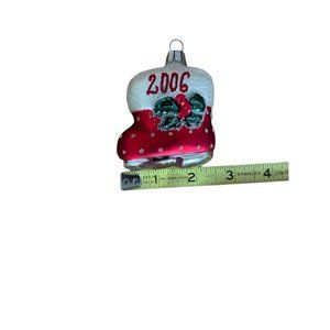 2006 Flocked Santa’s Snow Boot Holly Blown Glass Christmas Ornament Poland 2.5”