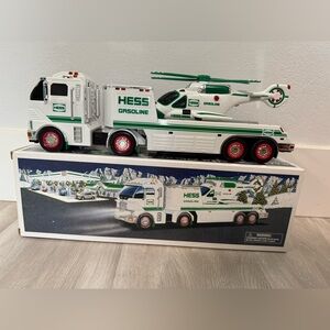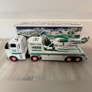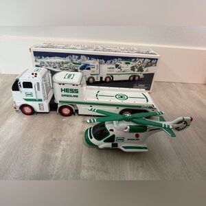 Exciting Gasoline toy truck and helicopter set in vibrant white and green. Perfect for imaginative play 2006 Hess Toy Truck and Helicopter Rotors and Light New in Box