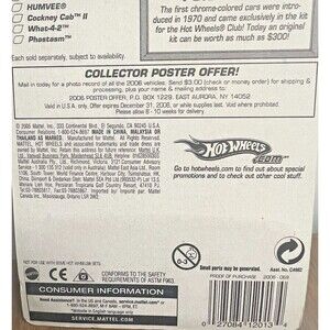 The 2006 Hot Wheels #69 Chrome Burnez 4/5 WHAT-4-2 Chrome Red-Tamp with PR5 Spoke is a die-cast metal and plastic car model in 1:64 scale. This Hot Wheels car is part of the Chrome Burnez series and features a red flame tampo, unopened box, and red tinted windows. Suitable for children aged 3 years and up, this toy is ideal for both boys and girls who enjoy collecting die-cast cars. The What-4-2 model showcases a unique design with the "Burnez" misspelled on the card, making it a distinctive addition to any Hot Wheels collection.