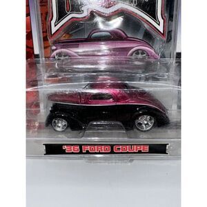 Add this rare 2006 Maisto G Ridez diecast car to your collection. This 1:64 scale model features a stunning purple and black paint job, showcasing the 1936 Ford Coupe's sleek design. Crafted from high-quality diecast material, this toy vehicle is durable and built to last. Perfect for diecast collectors and car enthusiasts alike, this Maisto G Ridez car is a must-have addition to your collection.