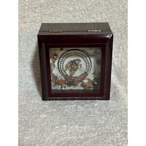 2006 music Christmas box with holiday train , Animated, wind-up, the song it plays is “ Wish You A Merry Christmas “. 3” X 4 1/4” Snowy scene