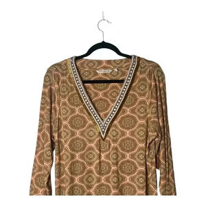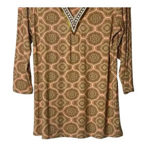 2006. SOFT SURROUNDINGS BEADED 3/4 SLEEVE TUNIC TOP SIZE MEDIUM V NECKLINE