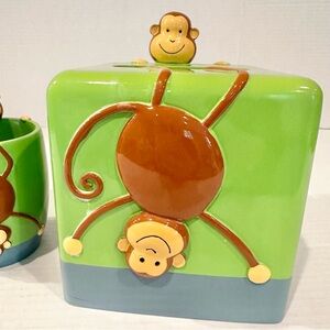 2006 Target Monkey Bathroom Tissue Cover & Toothbrush Holder Set. Excellent condition, some wear. See pics. From a non-smoking home.