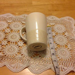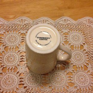 Cream and light tan 2006 Starbucks coffee mug / cup. Size is 3 1/2" across by 5" tall. Sort of a lattice design at bottom. Good, clean used condition. Light scuffing on bottom, see last picture. I've tried to find this pattern online but haven't had any success. If anyone knows the name of it, I'd love to know. It's a bit smaller than the 16 oz Starbucks cups.