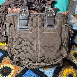 2006 Vintage Y2K Coach North South Carryall Tote in Signature Brown Jacquard