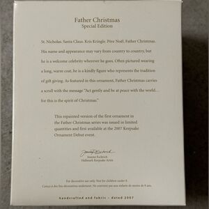 This repainted (colorway) version of the first ornament in the Father Christmas series was issued in limited quantities and first available at the 2007 Keepsake