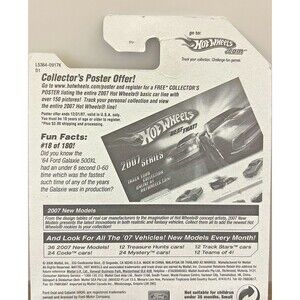 The product is a 2007 Hot Wheels #18 New Models 1964 Ford Galaxie 500XL in blue color with chrome 5-spoke wheels. This die-cast metal/plastic car model is part of the Hot Wheels 2007 New Models series and is 1:64 scale. It is suitable for various age levels, including young children and collectors, and is designed for boys and girls. The model features a blue color variation, unopened box, and is part of the Die-Cast Cars character family. Made in Malaysia, this Hot Wheels Ford Galaxie 500XL is a sought-after collectible for car enthusiasts and collectors.