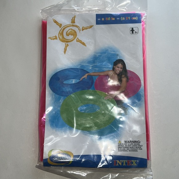 Intex The Wet Set Tire Tube 59251TT is a brand new, never used inflatable float designed for water sports and swimming. This 36-inch tube is in a vibrant neon pink color and is made in China. It is a hard-to-find item that is perfect for anyone looking to add some fun to their water activities.