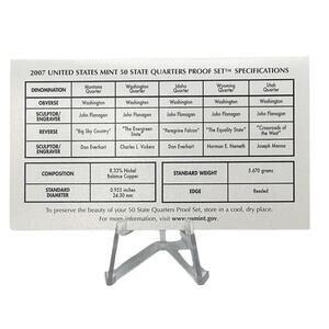 The 2007 U.S. Mint 50 State Quarters Proof Set features Montana, Washington, Idaho, Wyoming, and Utah. Original box and certificate are included.