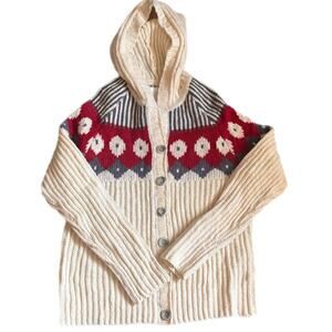 2007 nwt cream and red Old Navy knit hoodie sweater