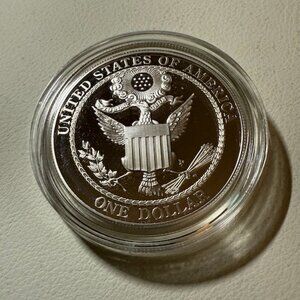 This coin has been produced by the Department of the Treasury, US Mint to honor the Bald Eagle's restoration to America's waterways and skies, commemorate the 35th anniversary of the Endangered Species Act of 1973, and celebrate the removal of this national symbol from the Endangered Species List. This coin is legal tender of the United States.