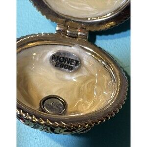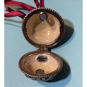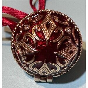 2008 GOLD TONE LOCKET PENDANT BOX ORNAMENT RED ENAMEL CRYSTAL SIGNED MONET