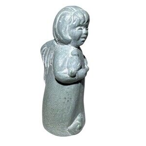 The product is a 2008 Green Signed Isabel Bloom Angel with Birds figurine, made of cement and featuring a glazed finish. This medium-sized sculpture depicts an angel with bird motifs, ideal for all occasions and any room in the house. Designed by Isabel Bloom in the United States, this American-themed piece is a beautiful addition to any collection of decorative figurines, perfect for adults who appreciate unique and sculpted pieces.