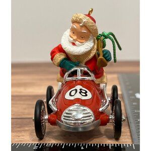 2008 HALLMARK KEEPSAKE ORNAMENT QXC8014 SANTA TAKES A SPIN RACE PEDAL CAR