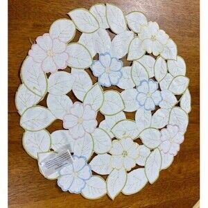 2008 Same Hedaya Cloth Cutwork Floral Embroidered Round Placemat 15.5" Diameter