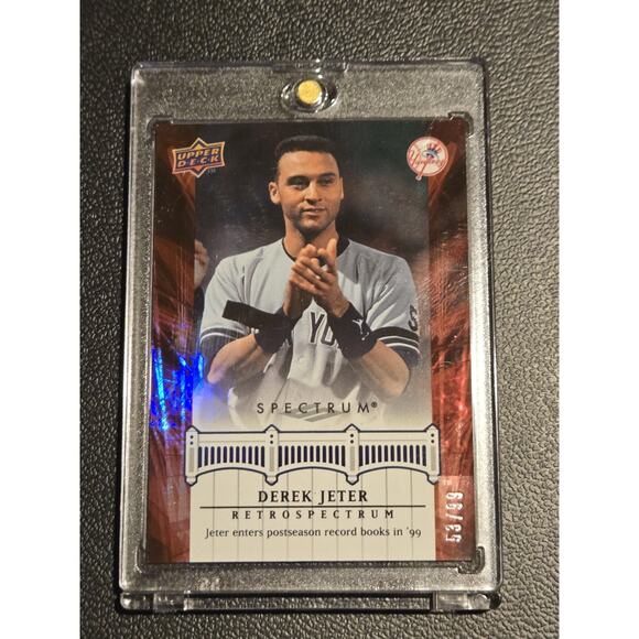 This is a nice example of a 2008 Upper Deck Spectrum #DJ40 Derek Jeter Derek Jeter Retrospectrum Red