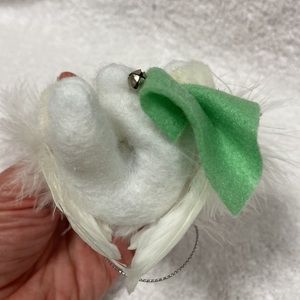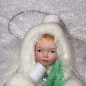Vguc pfsf snow flake angel baby with white feather wings holding a green blanket slight yellowing to the age of the glue