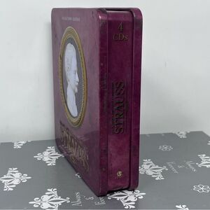 Collector's edition tin featuring Strauss. Elegant design with a purple finish and gold accents.
