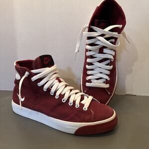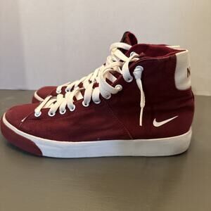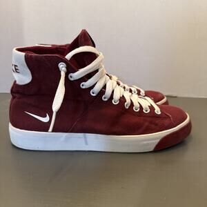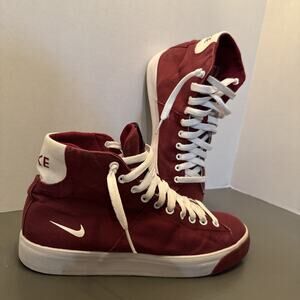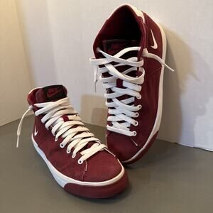 Nike high top sneaker preowned in excellent condition. Burgundy and white mens size 7.